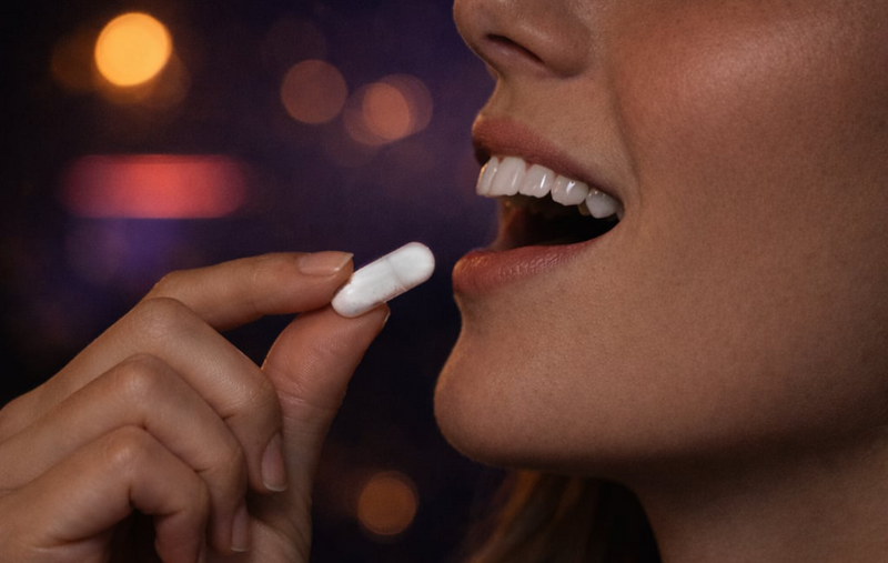 One capsule when the night begins. Not Drugs starts working while you're just getting started.